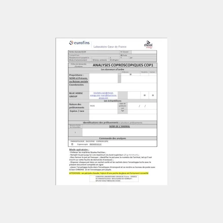 Délai d’utilisation du Kit Coproscopie Cheval : 6 mois à réception de la commande.