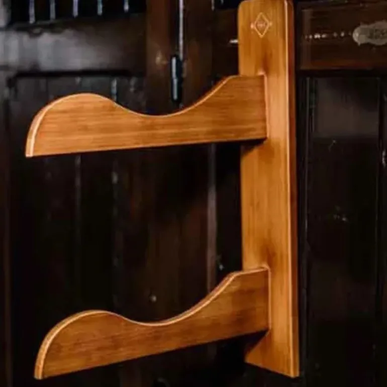 Ce porte selle fabriqué en bambou est à la fois très esthétique, résistant et facile à nettoyer. Il deviendra très rapidement un indispensable de votre sellerie. Grâce à son crochet à l’arrière il est très facile à accrocher partout et pourra donc vous suivre en concours ou lors de vos déplacements.