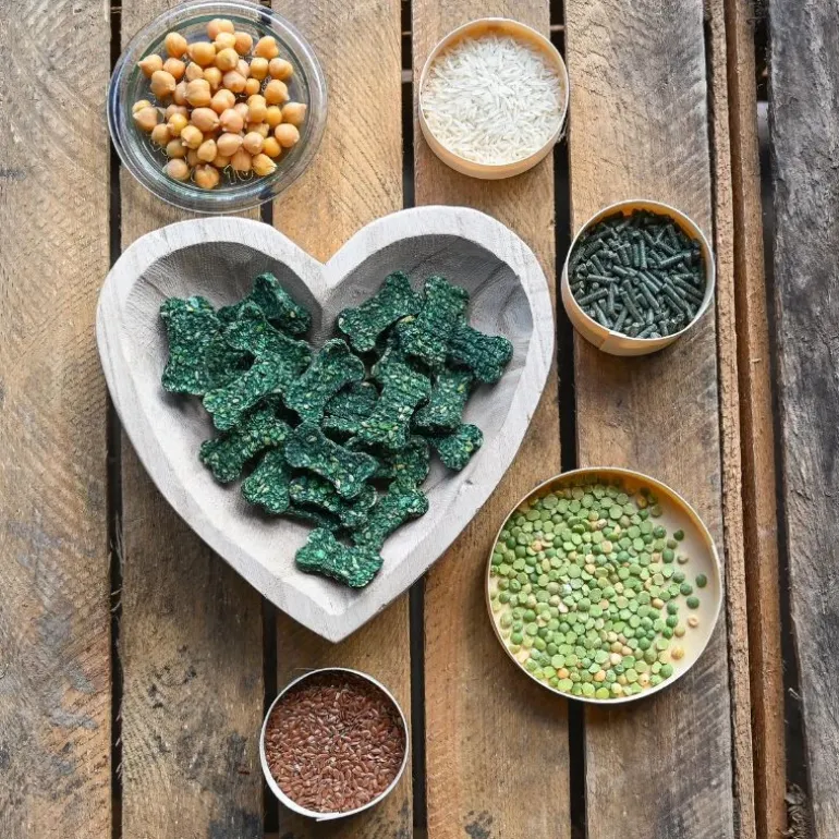 – Le Riz apporte des glucides pour une énergie durable, tandis que la Spiruline, une algue riche en nutriments, aide à renforcer les défenses immunitaires et soutient la vitalité générale de votre animal.