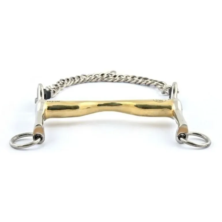 Ce mors de bride possède des petites branches de 45 mm ainsi qu’un canon standard de 18 mm en German Silver (65% cuivre, 23% zinc, 12% nickel). Le German Silver est un alliage décontractant et solide.