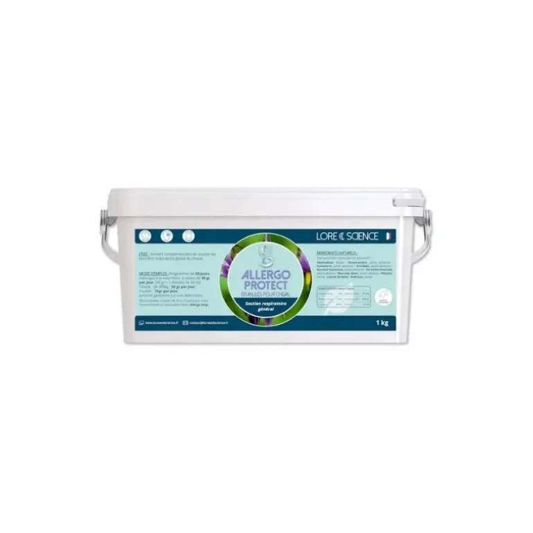 Allergo Protect de Lore et Science est un complément alimentaire formulé pour soutenir les chevaux exposés aux agressions extérieures. Cette composition de plantes sèches spécifiques aide au maintien d’une fonction respiratoire globale normale face aux poussières, pollens, moisissures et irritants aériens.