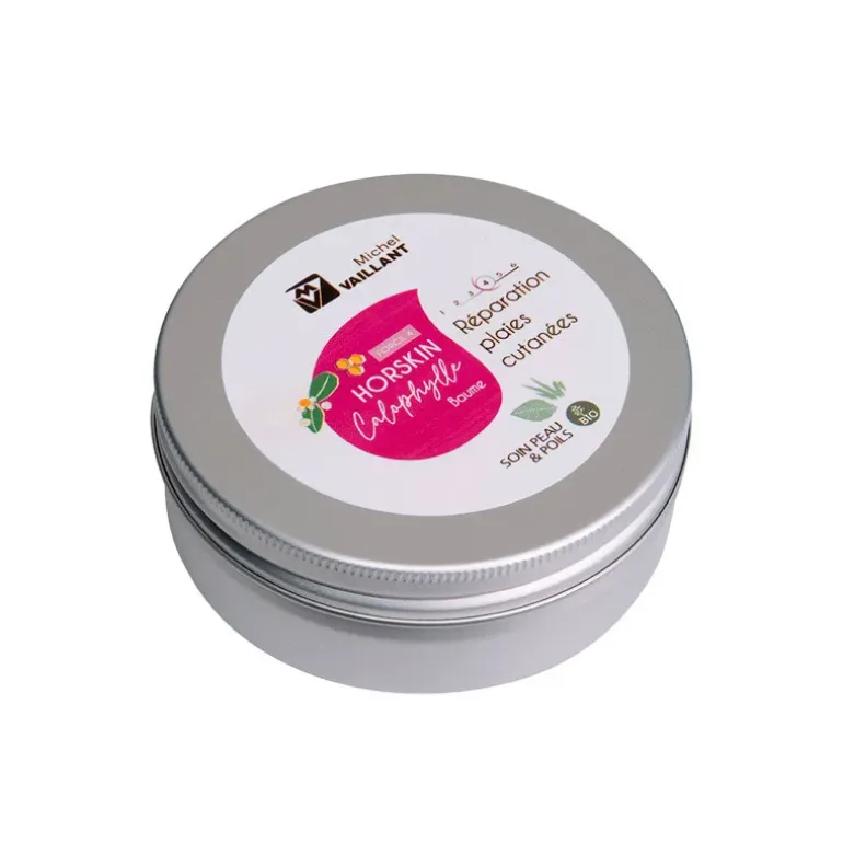 – Les huiles essentielles bio : Le Horskin Baume Bio Calophylle contient également des huiles essentielles de clou de Girofle, de Niaouli, de Lavande aspic, d’Eucalyptus citronné et de Palmarosa. Ces huiles ont des propriétés antiseptiques, anti-inflammatoires et régénérantes qui aident à réparer les plaies cutanées et à apaiser les irritations.