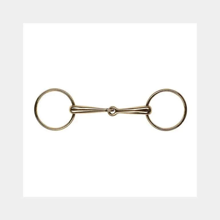 - Le mors à brisure simple en cyprium allie les avantages du cuivre et de l’inox : décontraction et solidité.