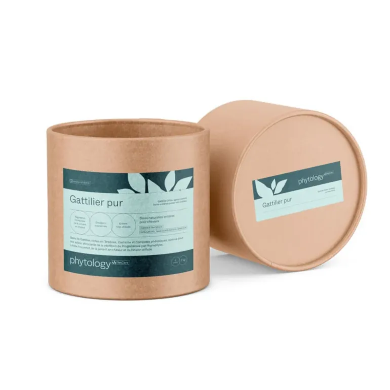 Le GATTILIER BAIES ENTIERES PHYTOLOGY VETCARE se compose essentiellement de flavonoïdes (casticine, et la vitexine), aux propriétés antioxydantes et en iridoïdes (dont l’agnuside) qui confèrent un effet progestérone-like et dopaminergique, particulièrement intéressant dans la régulation des troubles hormonaux de la jument, la progestérone ayant un effet apaisant et calmant.